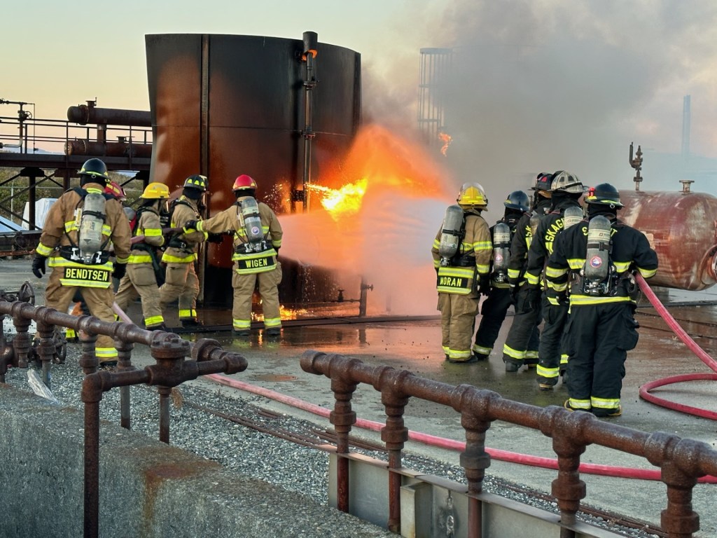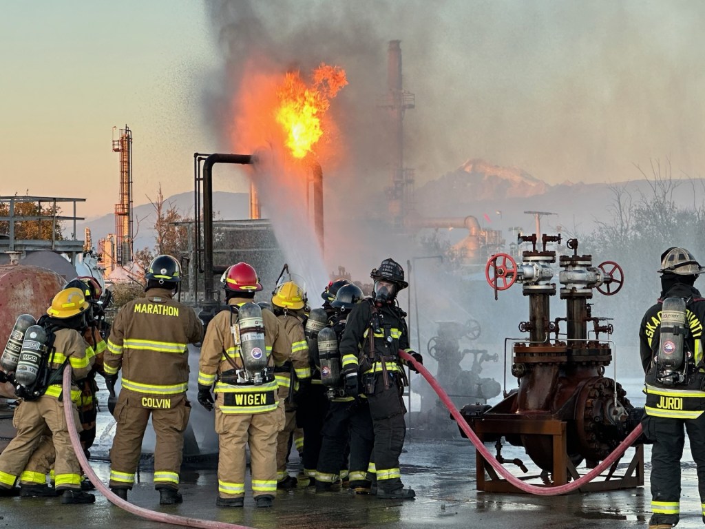 Training at the CARES drill at the Marathon Refinery. Always exciting to work with real fire. That’s Skagit Fire 13 in the Black.
