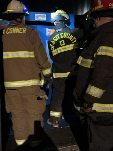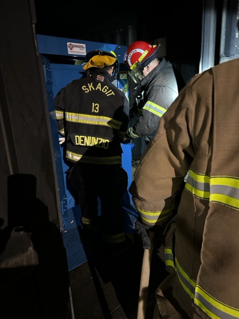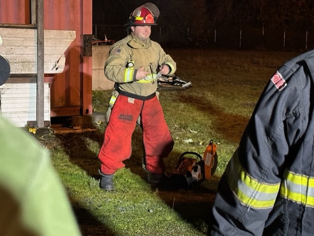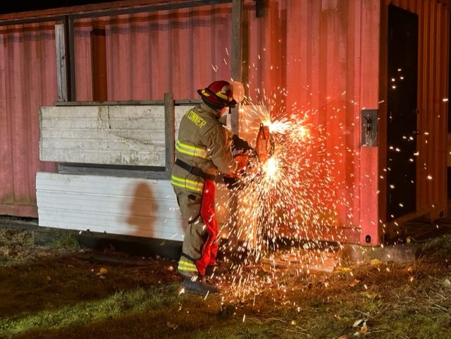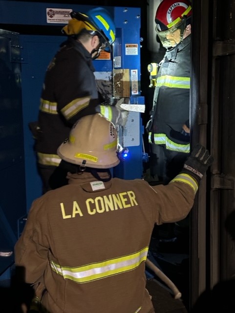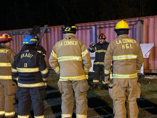 This training was for forcible entry on the new door that Skagit Fire District 13 and La Conner Fire Department all bought together. Captain Chris Olbu and La Conner also had instruction on chainsaw usage.